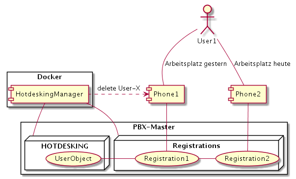 Der Hotdesking Manager (HDM) ist ein Programm, um eine automatische Hotdesking Lösung für Innovaphone Telefonanlagen abzubilden. Dabei werden die Registrierungen von definierten Userobjekten überwacht und anschließend in Abhängigkeit der Konfiguration automatisch an Endgeräten abgemeldet.